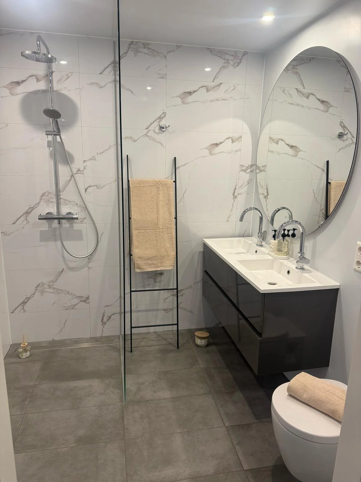 Prefab is bij Portisa nooit standaard. Naast efficiëntie en betrouwbaarheid staat esthetiek centraal. We denken mee over kleuren, materialen, sanitair en indeling, zodat elke badkamer een hoogwaardige uitstraling krijgt die past bij de beleving van het project.