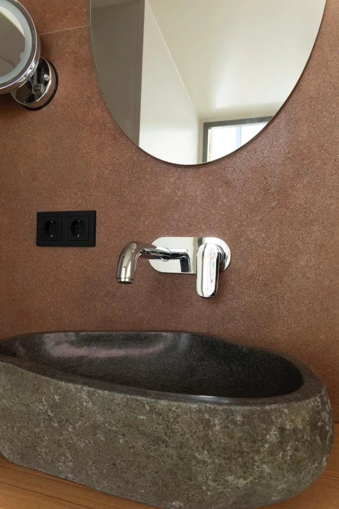 De Beekse Bergen breidt uit en daar mochten wij ze bij helpen. Het ontwerp lag al klaar, wat heel luxe en uitgesproken was. Out of the box wensen, zoals natuurstenen bladen, maatwerk wastafelmeubels met keien waskommen en niet te vergeten, op maat gemaakte spiegels. Of wij dat in ons badkamersysteem konden integreren?! Natuurlijk!